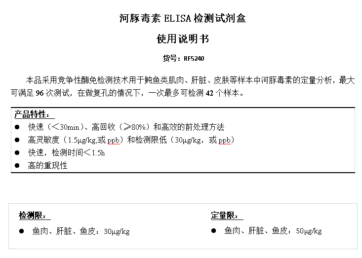 河豚毒素ELISA檢測(cè)試劑盒詳情